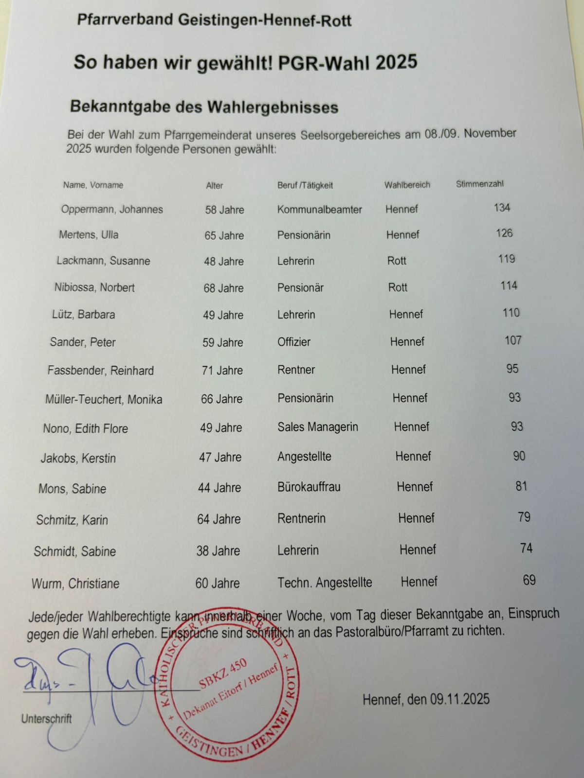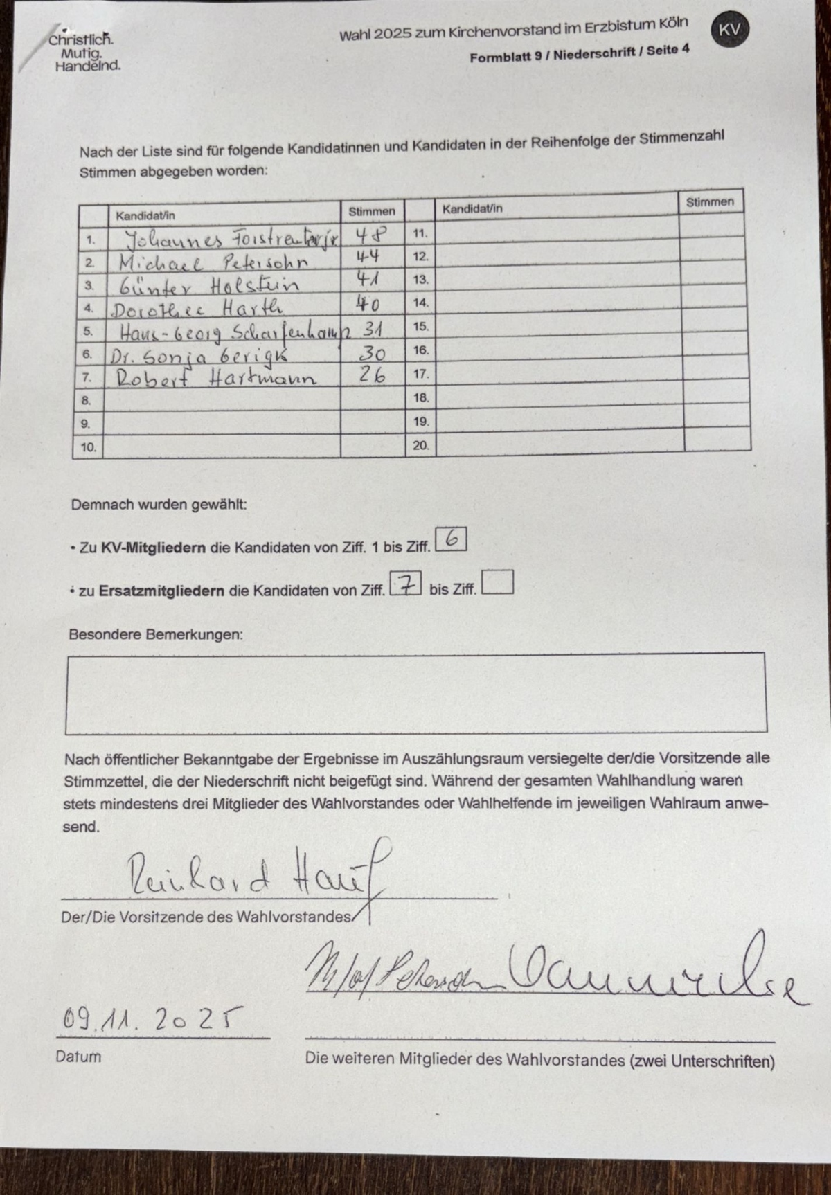 Leider hatten sich für die Pfarrei St. Michael nicht genug Kandidaten gefunden, so dass hier keine Kirchenvorstandswahl durchgeführt werden konnte.