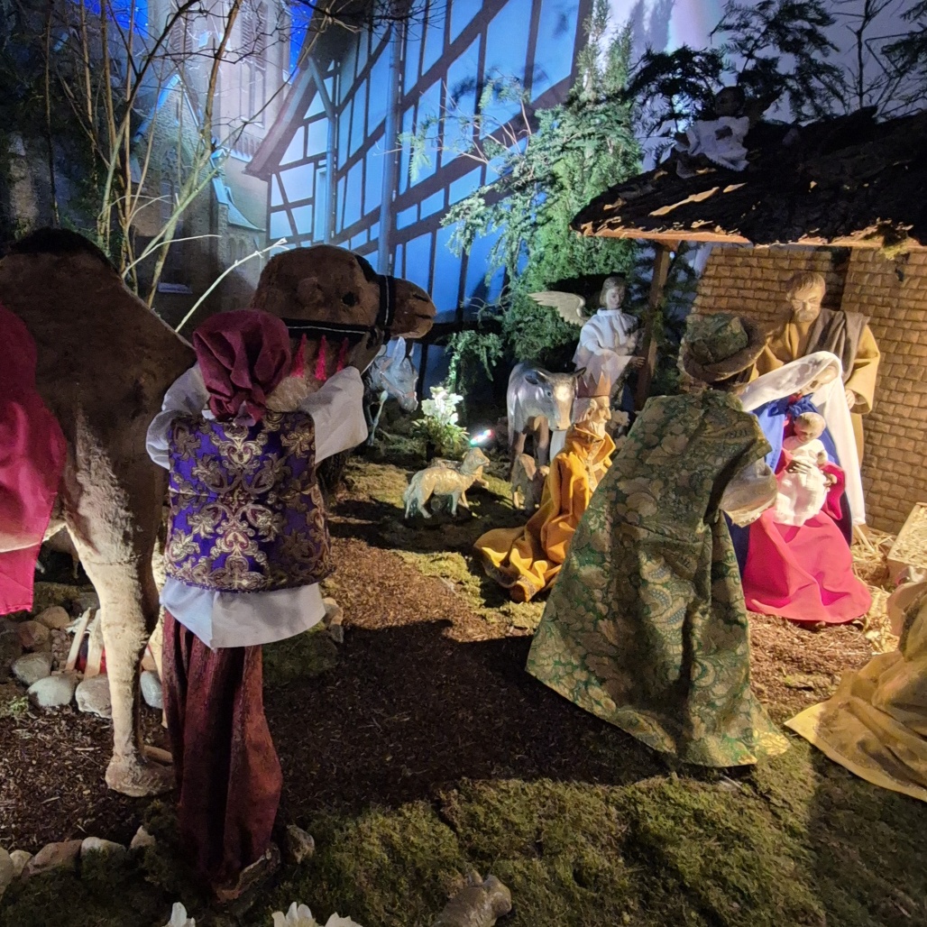 Die Tiere an der Krippe in unserer Pfarrkirche St. Simon und Judas durften sich zum Dreikönigsfest über Verstärkung freuen. Endlich erfüllte sich ein lang gehegter Wunsch nach einem Kamel, das nun pünktlich zum Hochfest Epiphania zusammen mit den drei Weisen aus dem Morgenland zum Kind in der Krippe kam. Bereits seit längerem hatte Pastor Lahr nach einem Holzschnitzer gesucht, der in der Lage war, ein Kamel in der Größe, die wir für unsere Krippe benötigen, herzustellen.